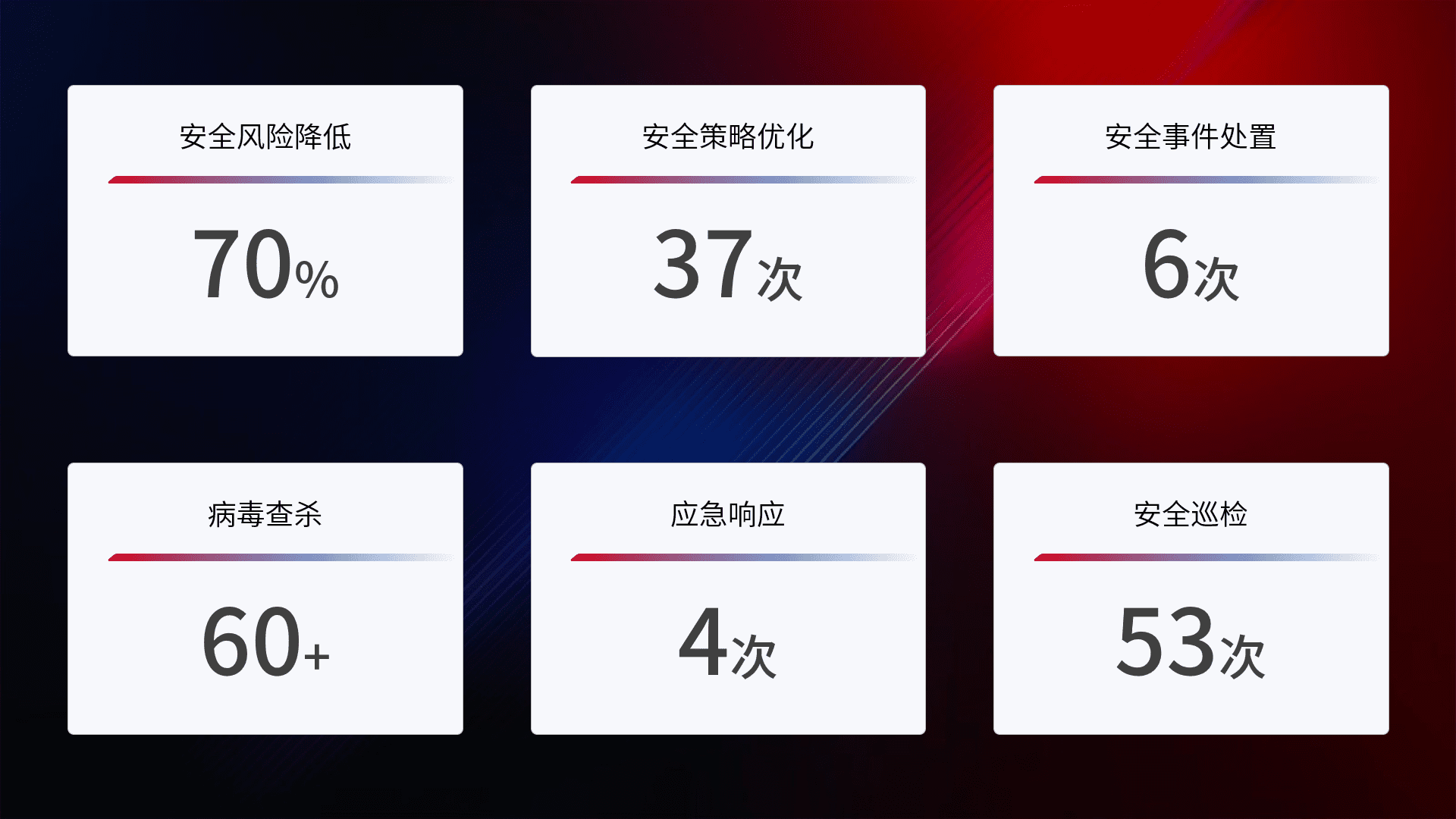 提供全面的安全事件报告体系,,,包括处置报告、、、周报、、季度和年度总结,,结合持续监控,,帮助客户深入了解网络安全状况。。